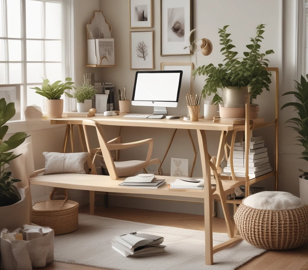 Your desk should make you want to sit down and create. A well-styled workspace isn’t vanity — it’s productivity fuel. Add art that sparks inspiration, a plant that breathes life into the room, or a motivational print that keeps your goals front and center.